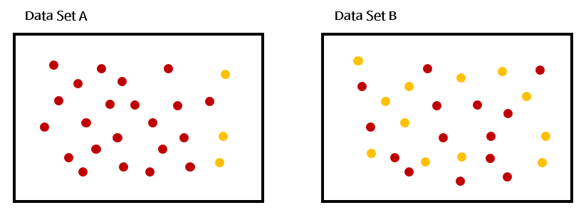 - 여기서 "평등"이라는 말이 중요한데, 위의 그림으로 설명하면 Data Set B 는 빨간색 점과 노란색 점이 비슷한 비율로 존재하기 때문에 "평등"한 데이터 셋이라고 말할 수 있다.